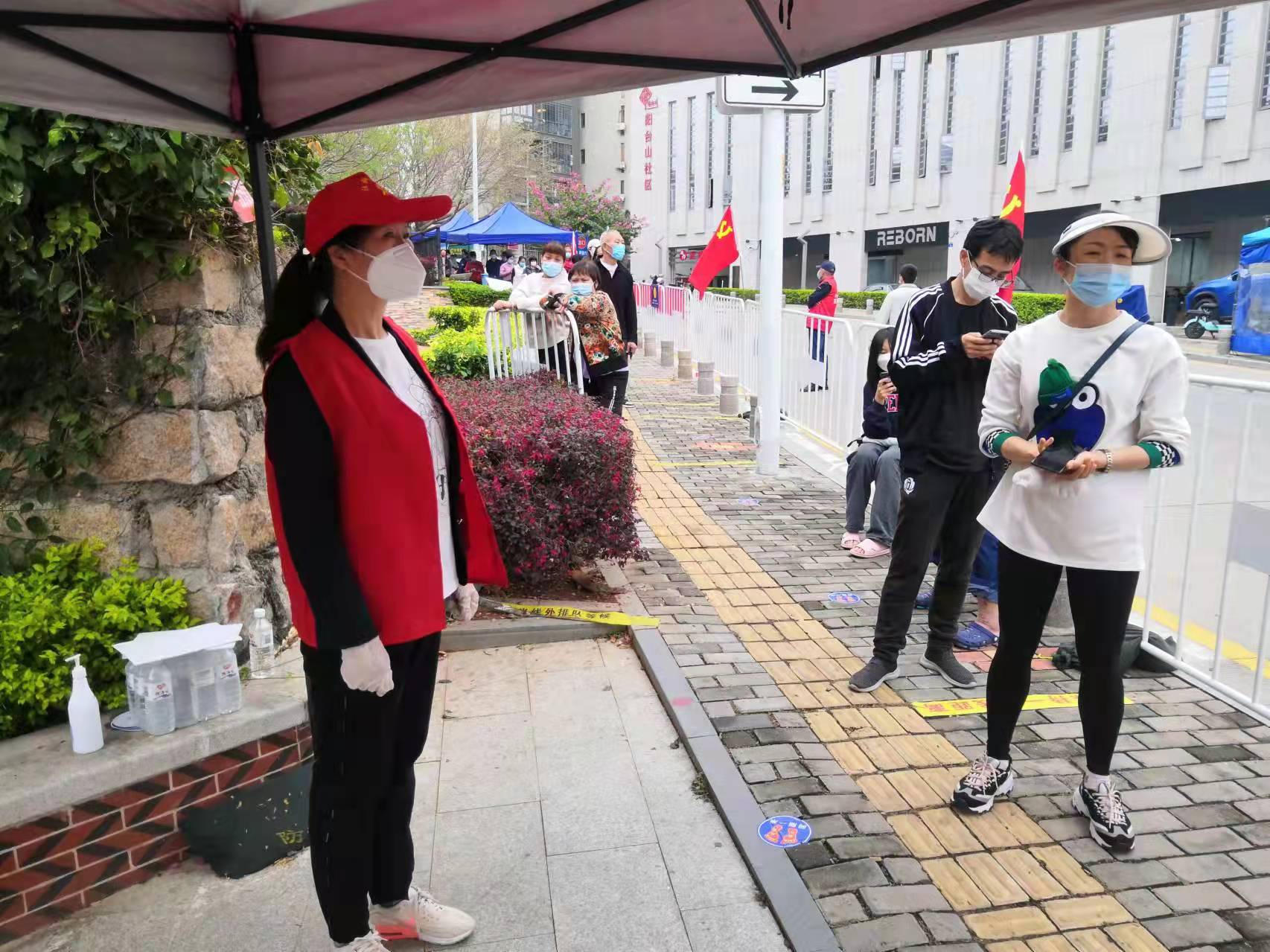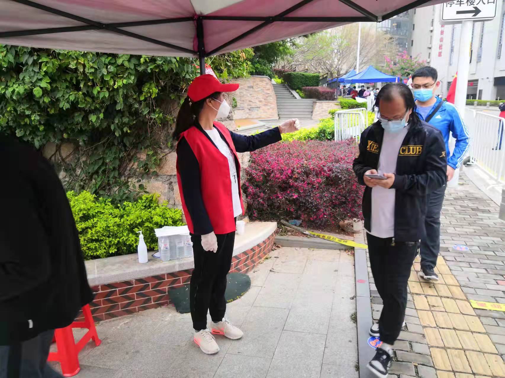 抵達(dá)社區(qū)后,他們就立刻投入緊張的核酸檢測(cè)工作,并在實(shí)際工作過(guò)程中,就掃碼查驗(yàn)等流程和分工提出合理化意見(jiàn)建議,確保核酸檢測(cè)安全有序。