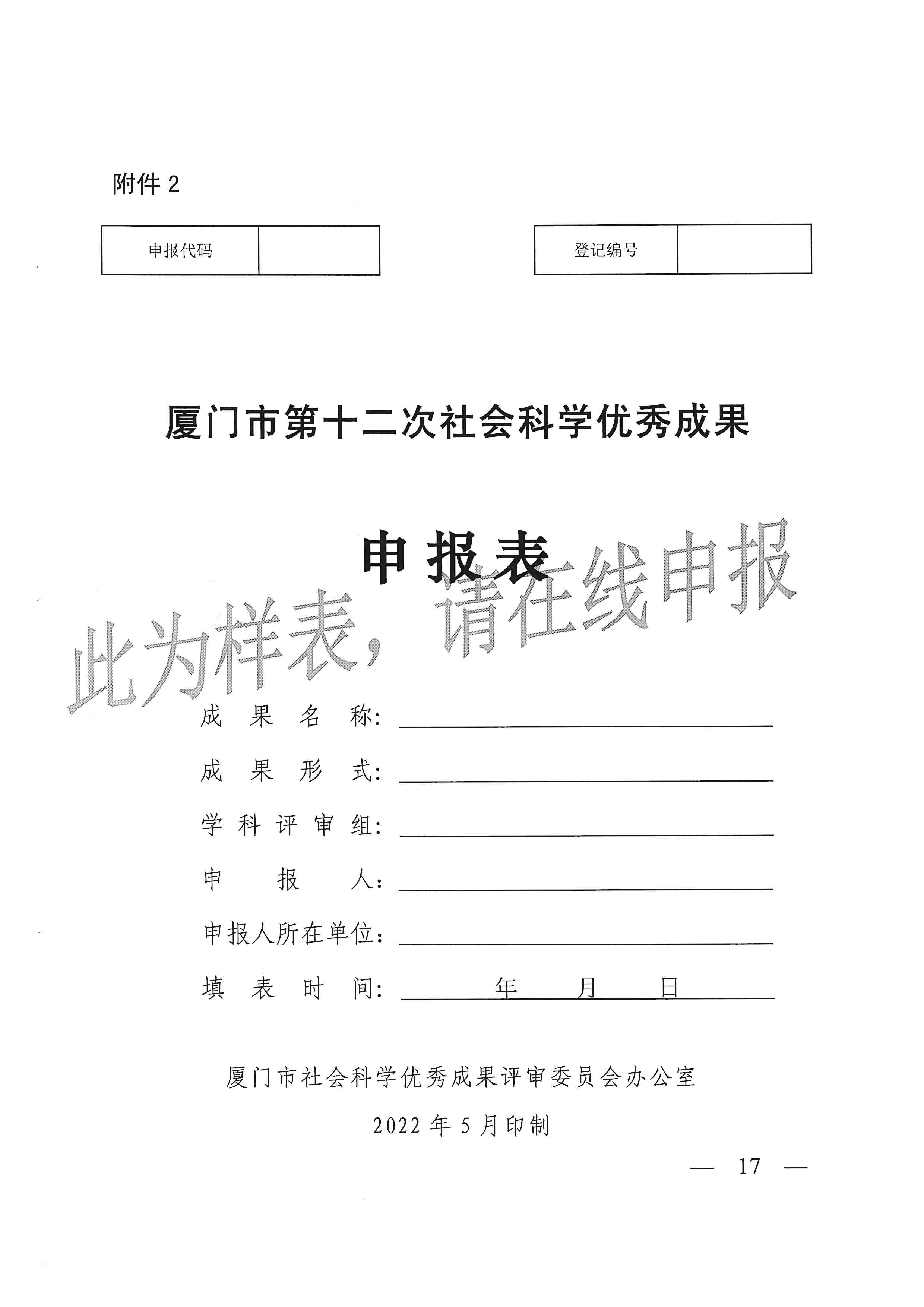 2.廈門(mén)市第十二次社會(huì)科學(xué)優(yōu)秀成果申報(bào)表(樣表)