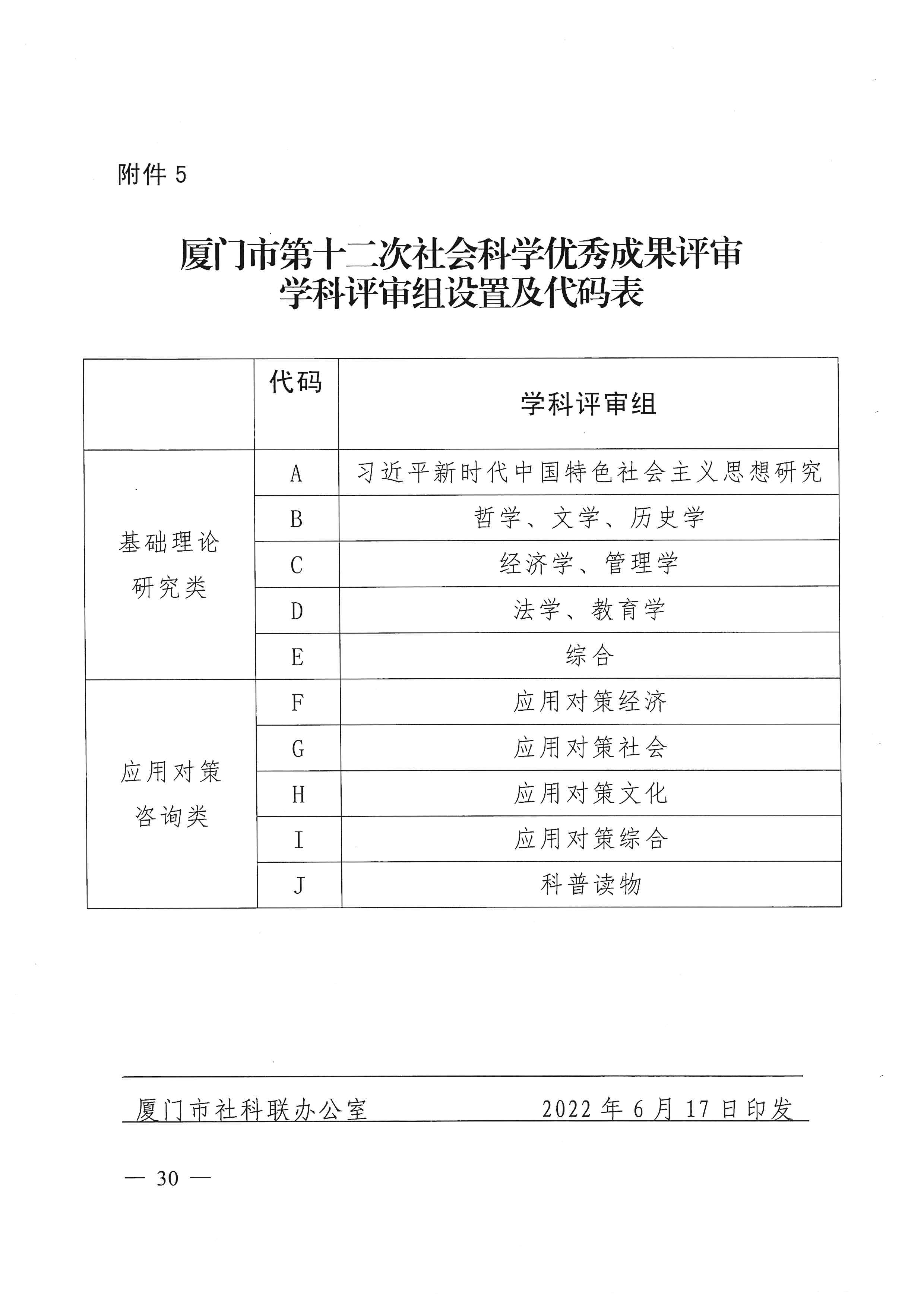 5.廈門(mén)市第十二次社會(huì)科學(xué)優(yōu)秀成果評(píng)審學(xué)科評(píng)審組設(shè)置及代碼表