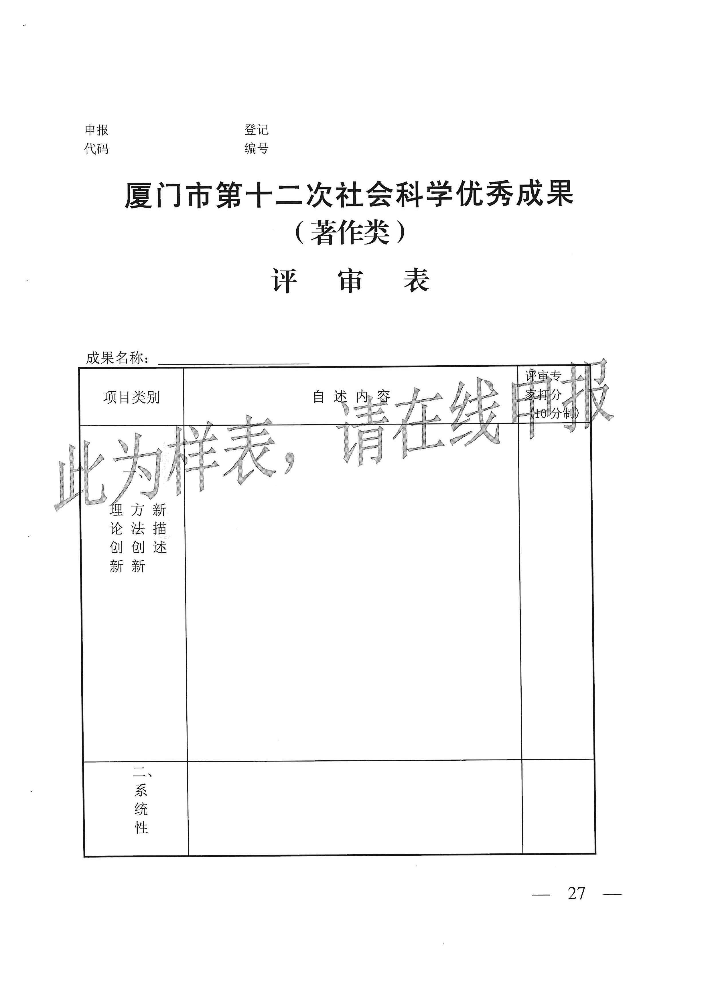 2.廈門(mén)市第十二次社會(huì)科學(xué)優(yōu)秀成果申報(bào)表(樣表)