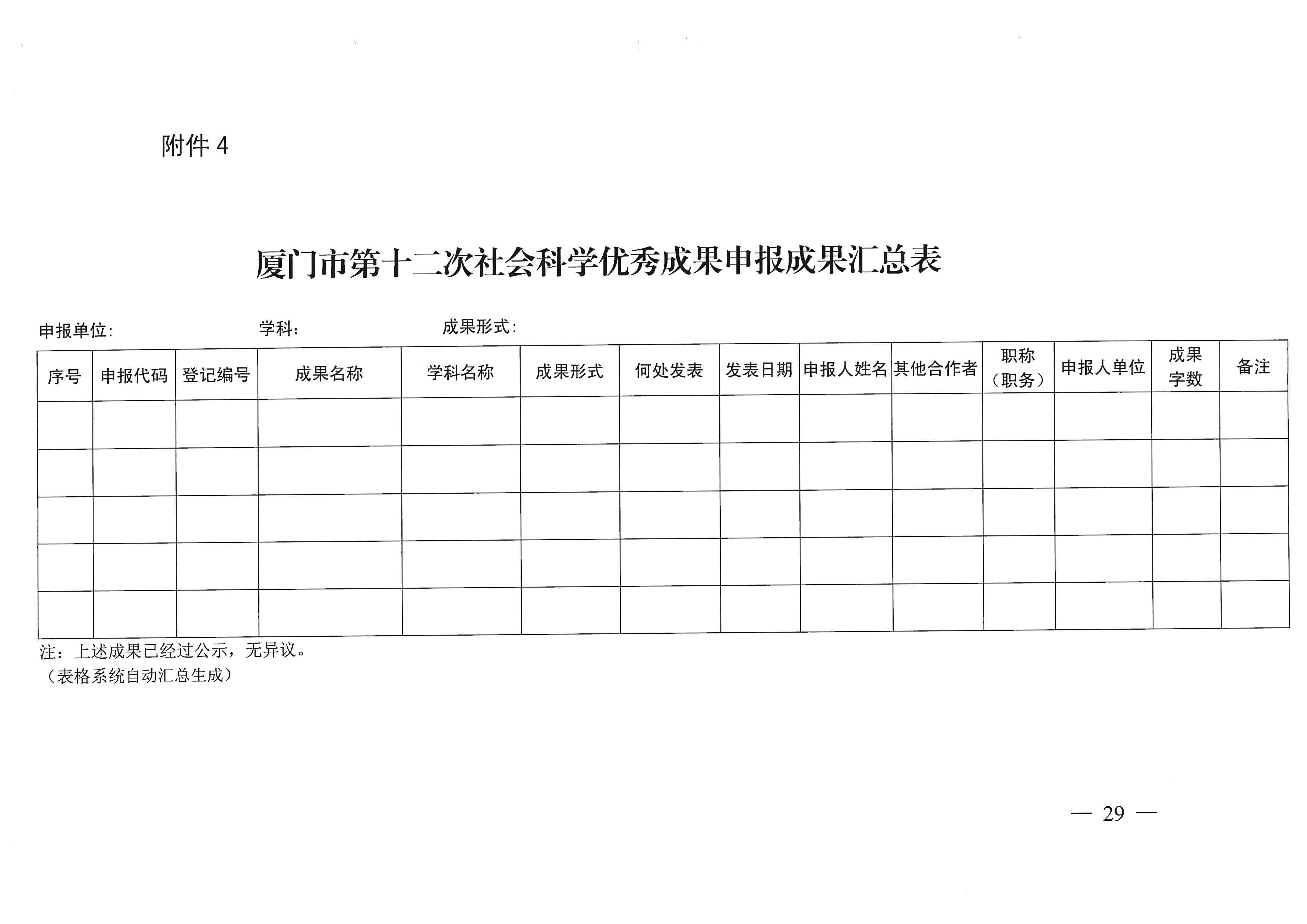4.廈門(mén)市第十二次社會(huì)科學(xué)優(yōu)秀成果申報(bào)成果匯總表